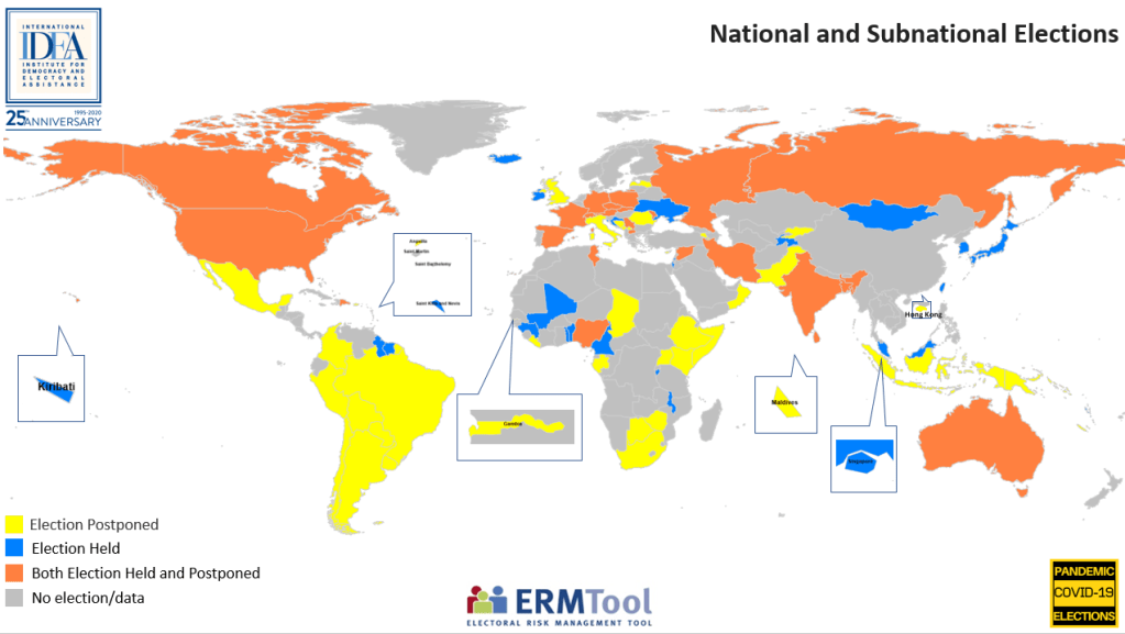 For more details on which elections have been delayed, postponed or went ahead, visit the original IDEA article which also details case studies of different elections across the world
